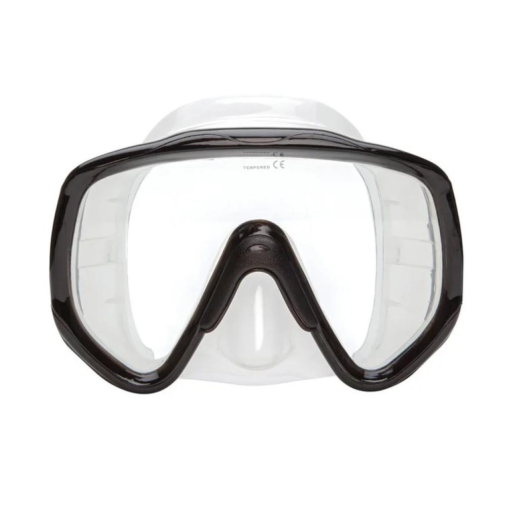 The Cortez Mask is unique in two ways. The skirt is wider from top to bottom providing an excellent fit on larger faces and it comes standard with a contoured X-Strap, which fits comfortably on the back of the head.