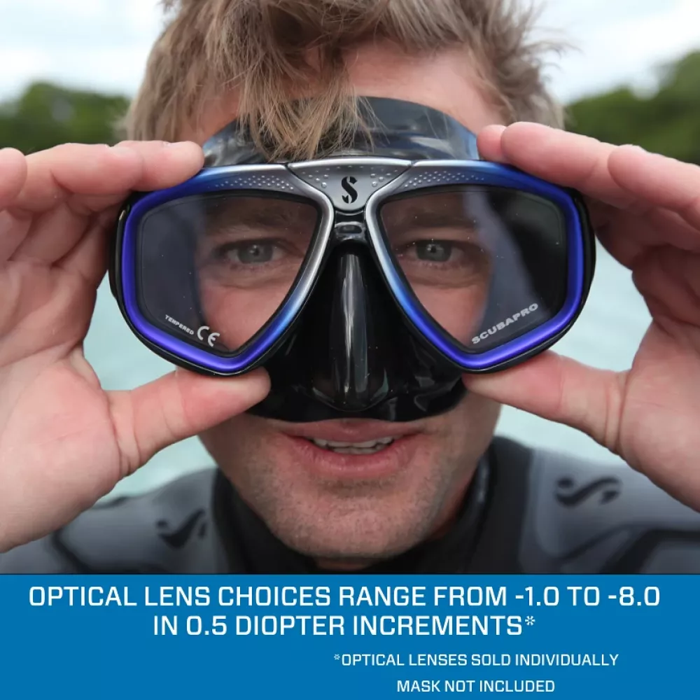 If you dive with a SCUBAPRO Zoom mask and need some optical enhancement, there are a wide selection of glass optical lenses available. Lens choices for nearsightedness range from -1.5 to -8.0 in 0.5 diopter increments and are interchangeable to fit the right or left side.