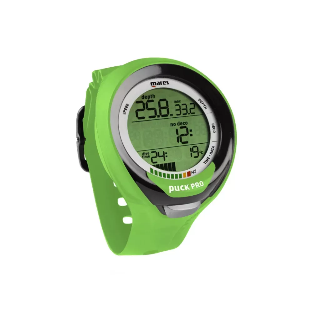 The Puck Pro + scuba diving computer is the evolution of the previous Puck Pro model. Ultra flat design for a perfect fit. It allows you to handle multi-mix dives with up to two Nitrox blends (21-99%). The 3-line layout ensures clean, clear and understandable readability, thanks to the traditional segment display.