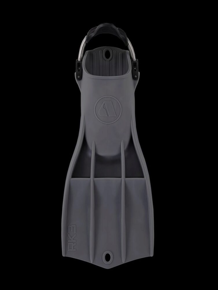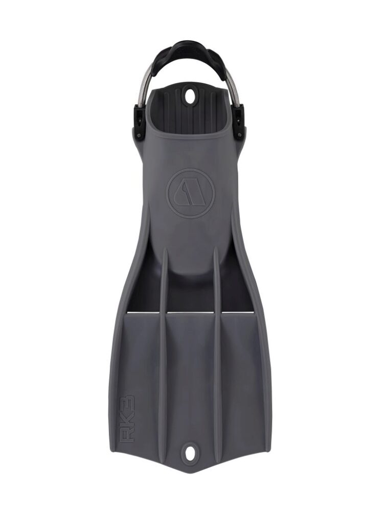 The Apeks RK3 is a rugged thermoplastic rubber fin featuring an over-sized foot pocket to accommodate drysuit boots and a spring strap for easy donning and doffing. The RK3 is available in four sizes: Small, Medium, Large and Super. We didn't give the RK3 fin a shoe size range as this can be very misleading. The environment that an RK3 is used in will tend to dictate the size of fin that you need, for example do you dive in a warm environment wearing wetsuit boots, or are you walking across pebbled beaches and wearing a drysuit and rigid dry boots? Both forms of footwear may be a size 9, but will take up different amounts of space in the fin foot pocket.